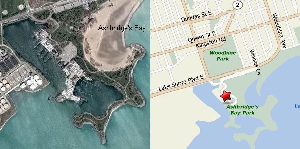 Take the subway to Woodbine Station and then take Woodbine Bus #92 south to the Ashbridges Bay turn-around loop (end of the line at the lake), or, take the #501 Queen Streetcar eastbound from downtown, and exit at the Coxwell Ave. stop and then walk south to the Balmy Beach Canoe Club (at Coxwell Ave and Lakeshore Blvd).